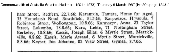 Commonwealth of Australia Gazette (National : 1901 - 1973), Thursday 9 March 1967 (No.20), page 1254 National Library of Australia http://nla.gov.au/nla.news-article24104295