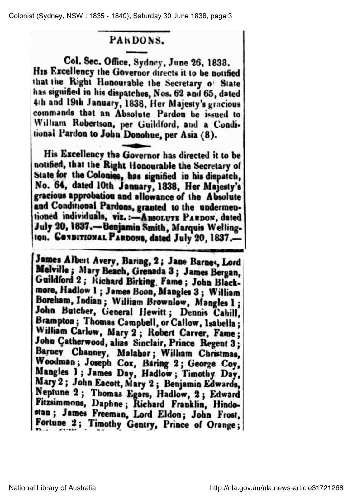 New South Wales Government Gazette (Sydney, NSW : 1832 - 1900), Wednesday 25 November 1840 National Library of Australia http://nla.gov.au/nla.news-article230139299