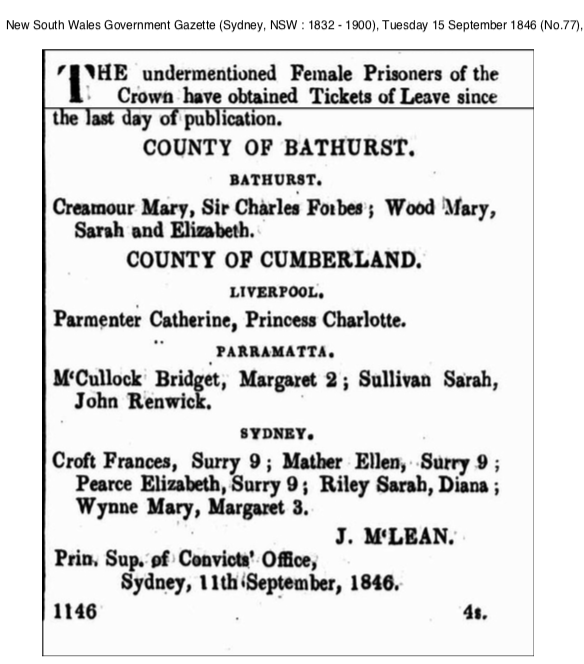 New South Wales Government Gazette (Sydney, NSW : 1832 - 1900), Friday 10 April 1846 (No.29). National Library of Australia http://nla.gov.au/nla.news-article230141327