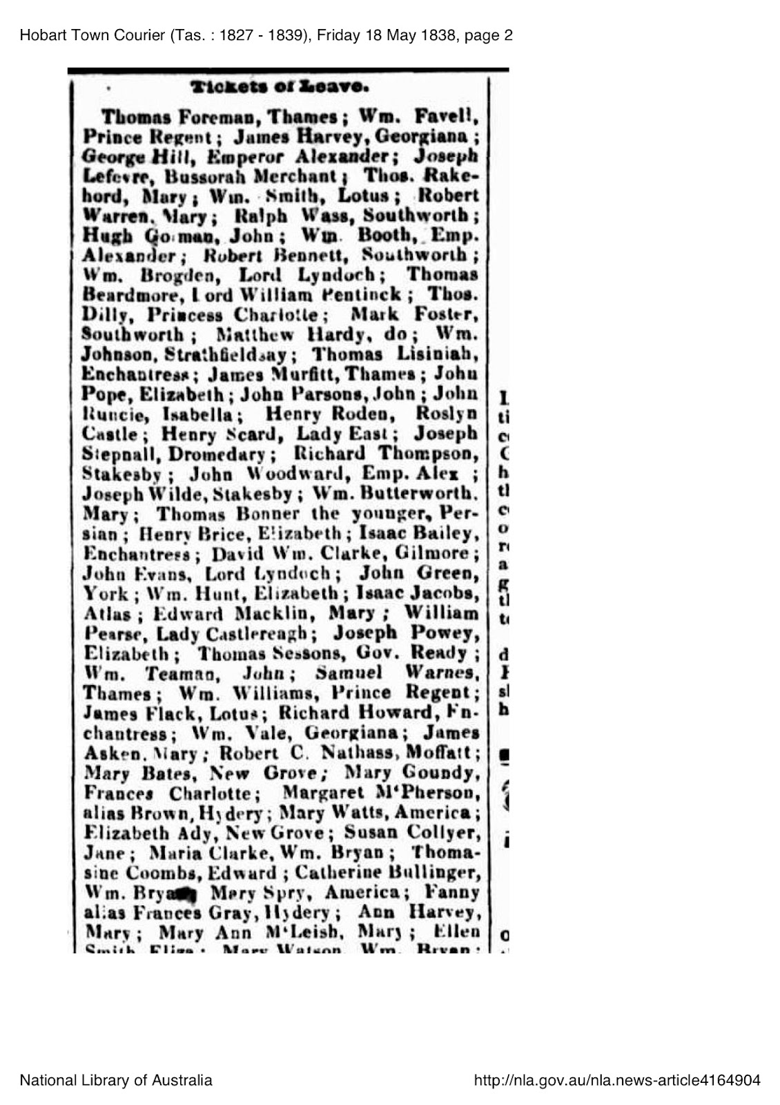 New South Wales Government Gazette (Sydney, NSW : 1832 - 1900), Wednesday 20 April 1836 (No.218) National Library of Australia http://nla.gov.au/nla.news-article230672154