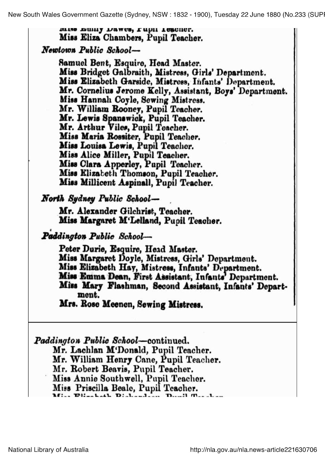 New South Wales Government Gazette (Sydney, NSW : 1832 - 1900), Tuesday 22 June 1880 (No.233) http://nla.gov.au/nla.news-article221630706