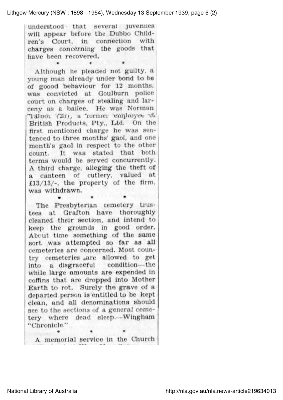 Lithgow Mercury (NSW : 1898 - 1954), Wednesday 13 September 1939, page 6 http://nla.gov.au/nla.news-article219634013